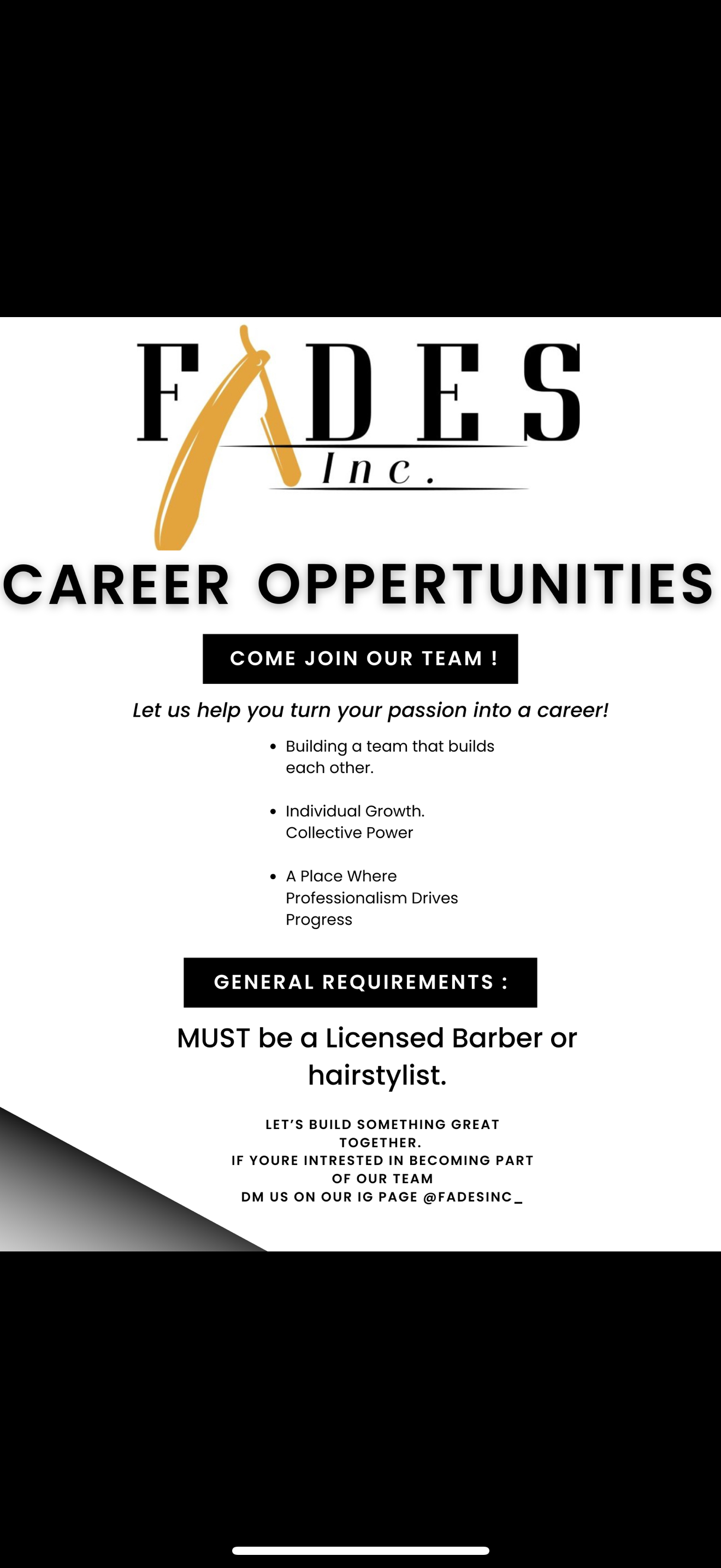 At Fades Inc. we are a group of dedicated professionals driven by passion, hard work, and excellence. Our team thrives on collaboration, innovation, and a shared commitment to achieving outstanding results. With diverse expertise and a relentless pursuit of excellence, we bring creativity and precision to every haircut.