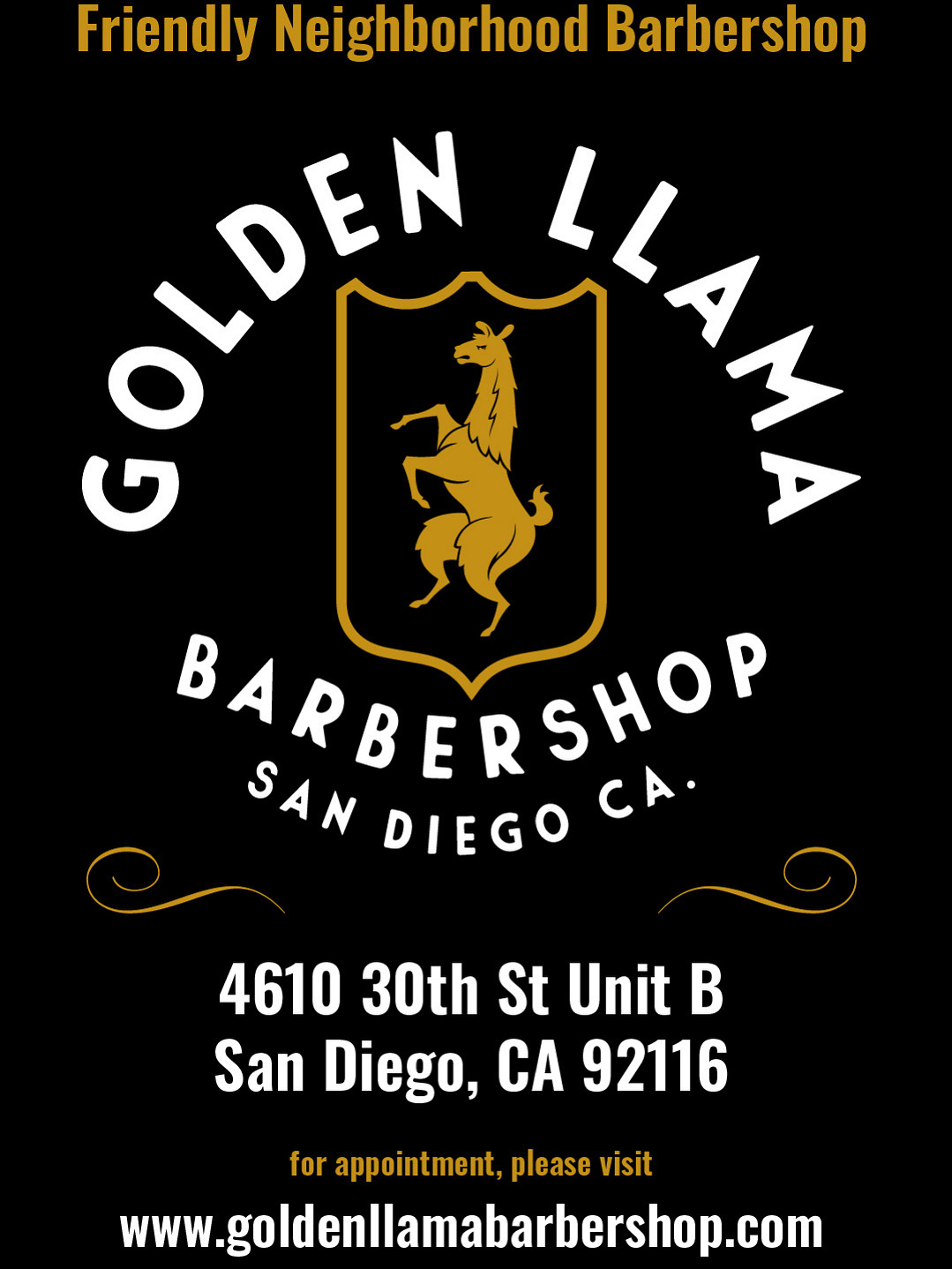Discover the Golden Llama Barbershop, your new go-to destination for a sharp looking haircut in San Diego! Nestled on 30th Street, this neighborhood gem bridges the vibrant communities of North Park, Normal Heights, and University Heights. Step inside for a welcoming atmosphere and expert grooming services that will leave you feeling confident and ready to take on the world. Experience the Golden Llama difference!
